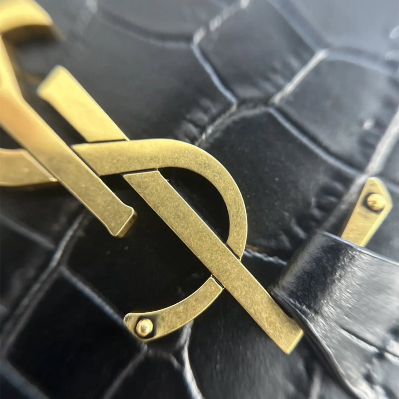 This YSL replica is a compact shoulder bag with a long body shape and crocodile-embossed leather paired with the YSL metal logo. It’s a simple yet stylish bag. It’s worth noting that, like the original, the leather is embossed cowhide, not real crocodile leather, which is stamped to mimic crocodile texture. This means that the replica is accurate in terms of design compared to the original.